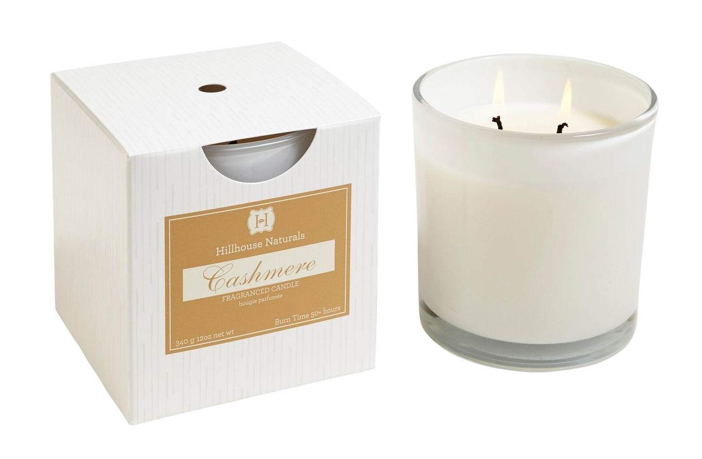 CASHMERE Hillhouse Naturals 12 oz White Glass 2-Wick Scented Jar Candle