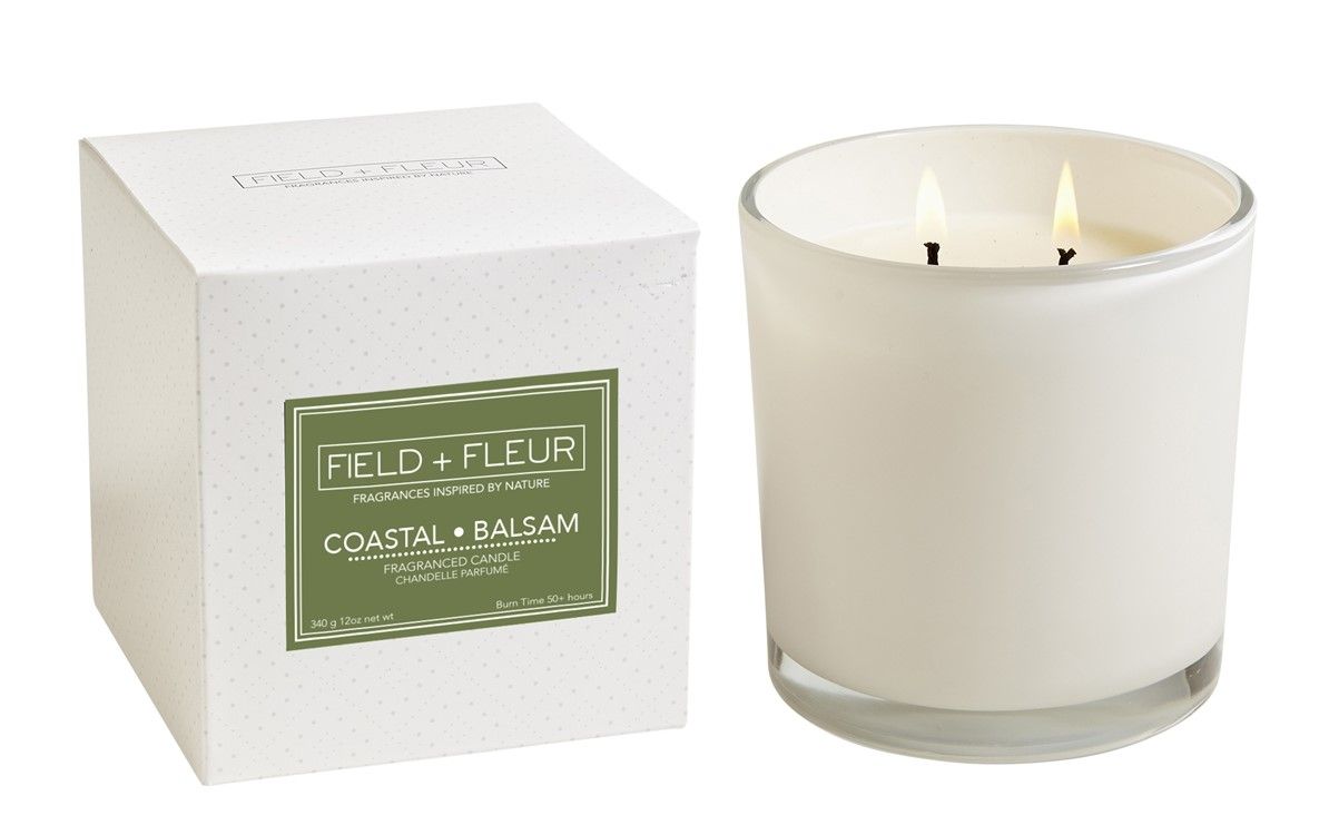 COASTAL BALSAM Field + Fleur White Glass 2-Wick 12 oz Scented Jar Candle