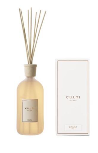 Glass bottles with ivory-coloured labels and cap in natural maple wood. The aesthetic character of the CULTI STILE line evokes purity and elegance. Gratia: a tribute to Spring and it represents an intense moment of inner peace. 1000 ML