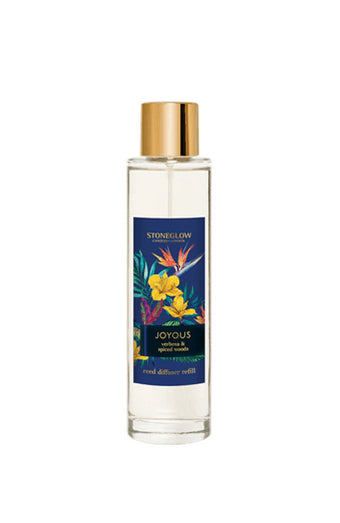 JOYOUS Verbena and Spiced Woods Stoneglow Infusion Refill Reed Diffuser 200 ml Zingy verbena, lemon, lime and grapefruit are balanced by delicious orchard fruits. Cinnamon and clove bring warmth whilst a rich patchouli base note brings a touch of the exotic. 200ml Refill