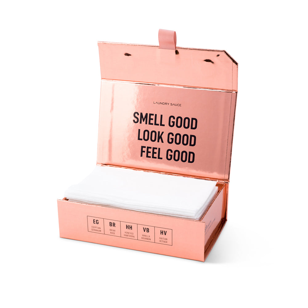 Laundry Sauce Dryer Sheets redefine your laundry experience. Expertly combating static, these sheets deposit sophisticated scents made with natural and responsibly sourced ingredients, delivering long lasting premium scent, while enhancing fabric softness. These Dryer Sheets promise a fresh, comfortable, and luxurious laundry experience in an effortless toss-and-dry method. (1 x 69 Dryer Sheets/box)