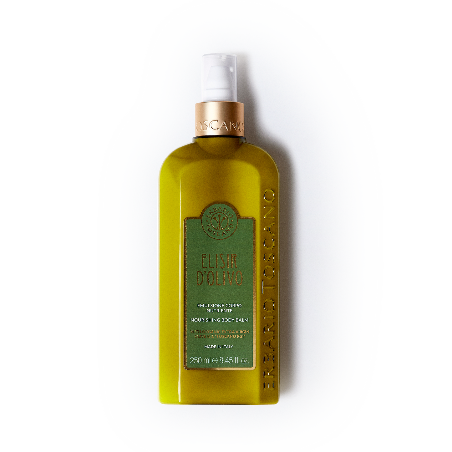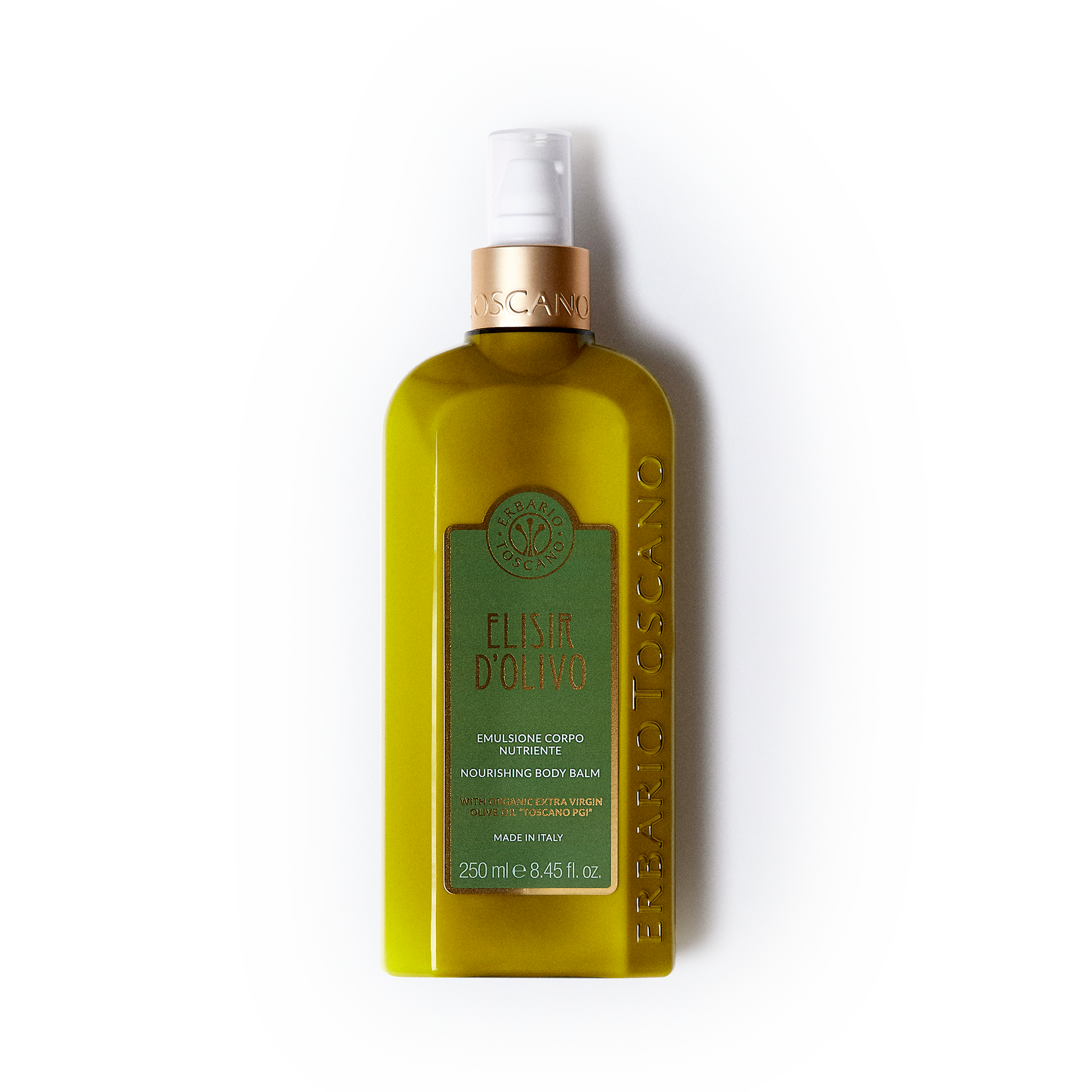A body balm with a light and silky consistency. Contains a special synergy of active substances derived from the olive tree, to prevent dryness and flaking, leaving the skin more toned and silky smooth. The Tuscan PGI Organic Extra Virgin Olive Oil has an energizing and nourishing effect, while the olive extract has a toning, protective and vasotonic action. The ideal restorative treatment for all skin types, and particularly recommended for sports enthusiasts and after sun exposure.