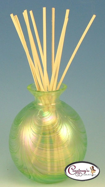 Sherbert Swril La Tee Da- Reed Diffusers gently fragrance your room 24 hours per day for 4 to 6 months with no flame or heat. When it finally stops releasing fragrance, just purchase a refill bottle of new fragrance and it goes right back to work for you. Bottle dimensions are approximately 5" x 3.5". Reed sticks are about 8" tall. Each La Tee Da Reed Diffuser comes complete with the bottle and reeds. Reed Diffuser Fragrance sold separately. Any brand of reed diffuser refill will work great.